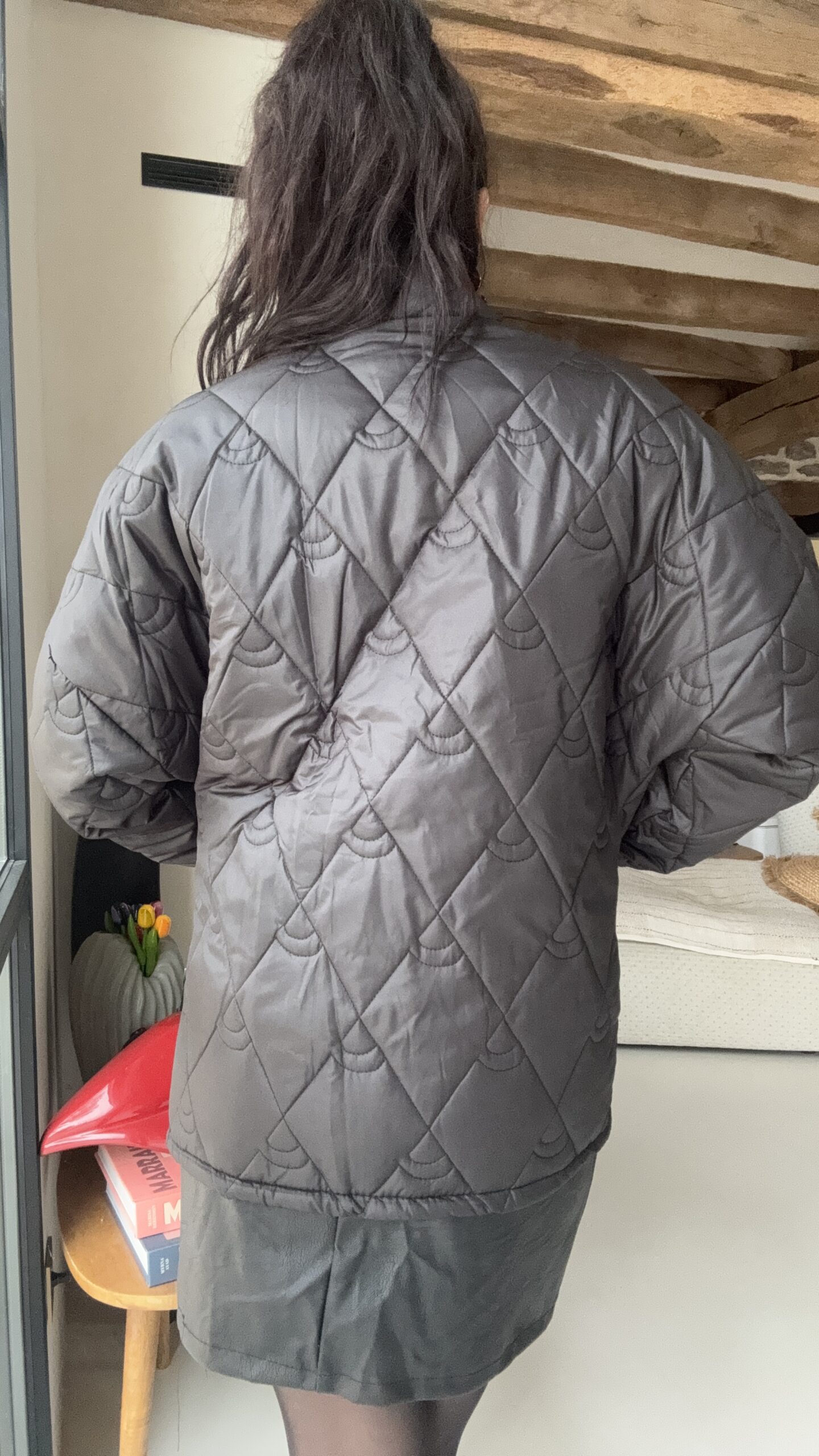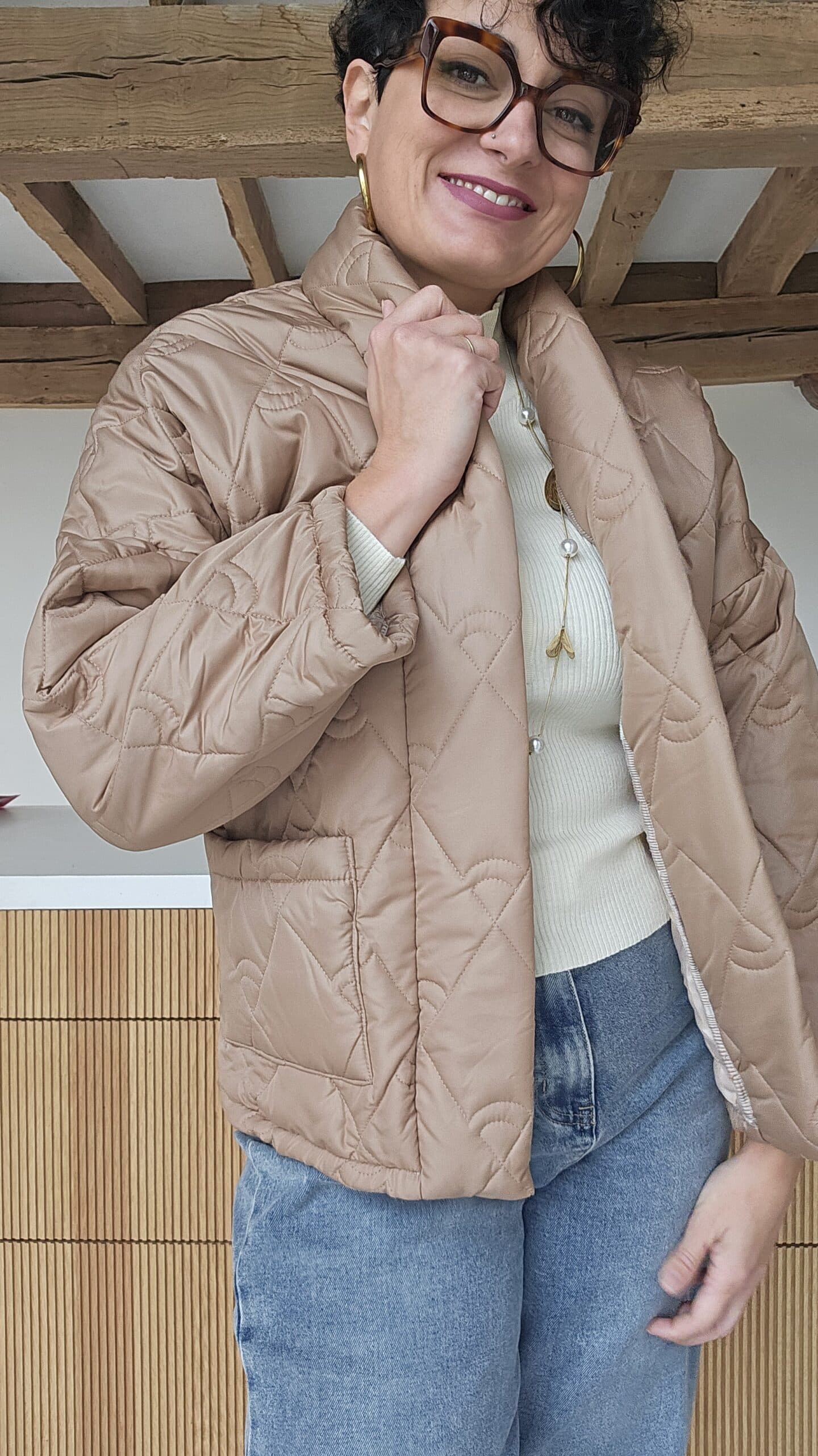 Blouson noir matelassé avec poches. Il sublimera vos looks avec une touche d’élégance. Existe aussi en beige.