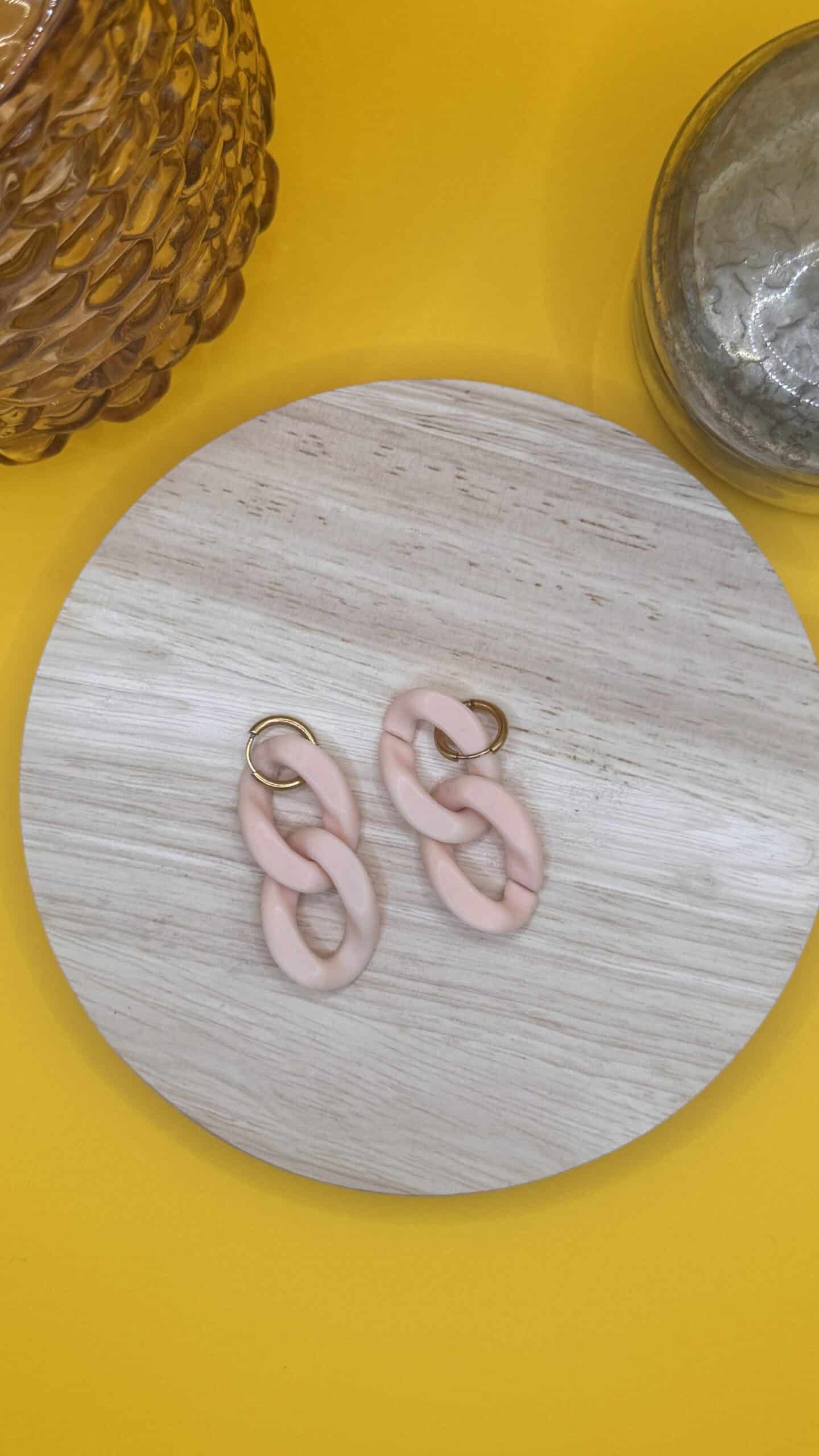 Boucles d’oreilles maille rose poudre