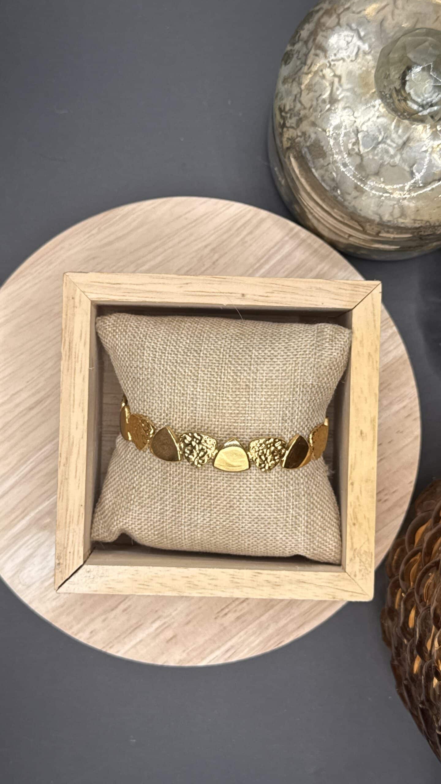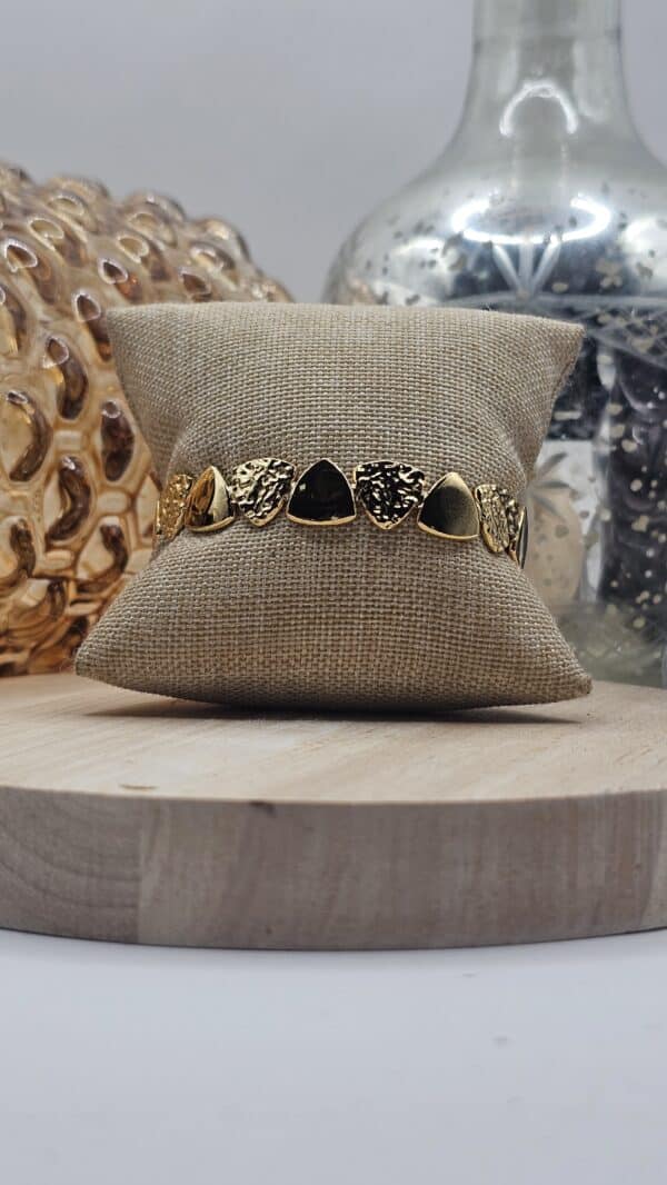 Bracelet de type jonc ajustable avec triangles effet lisse et martelé.