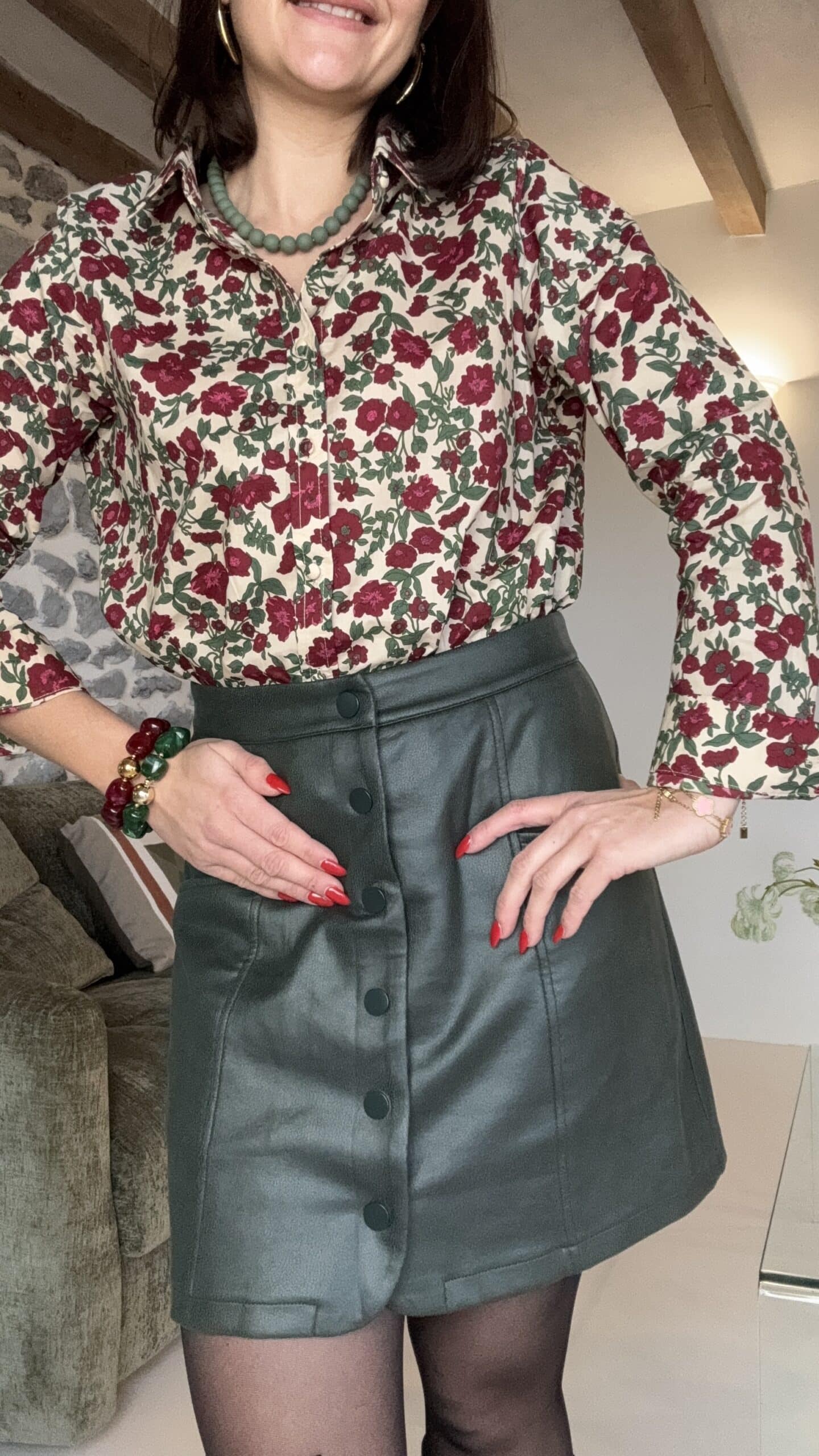 Jupe couleur vert sapin avec boutons sur le devant