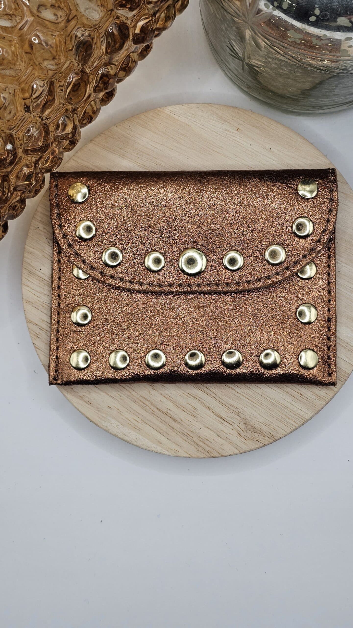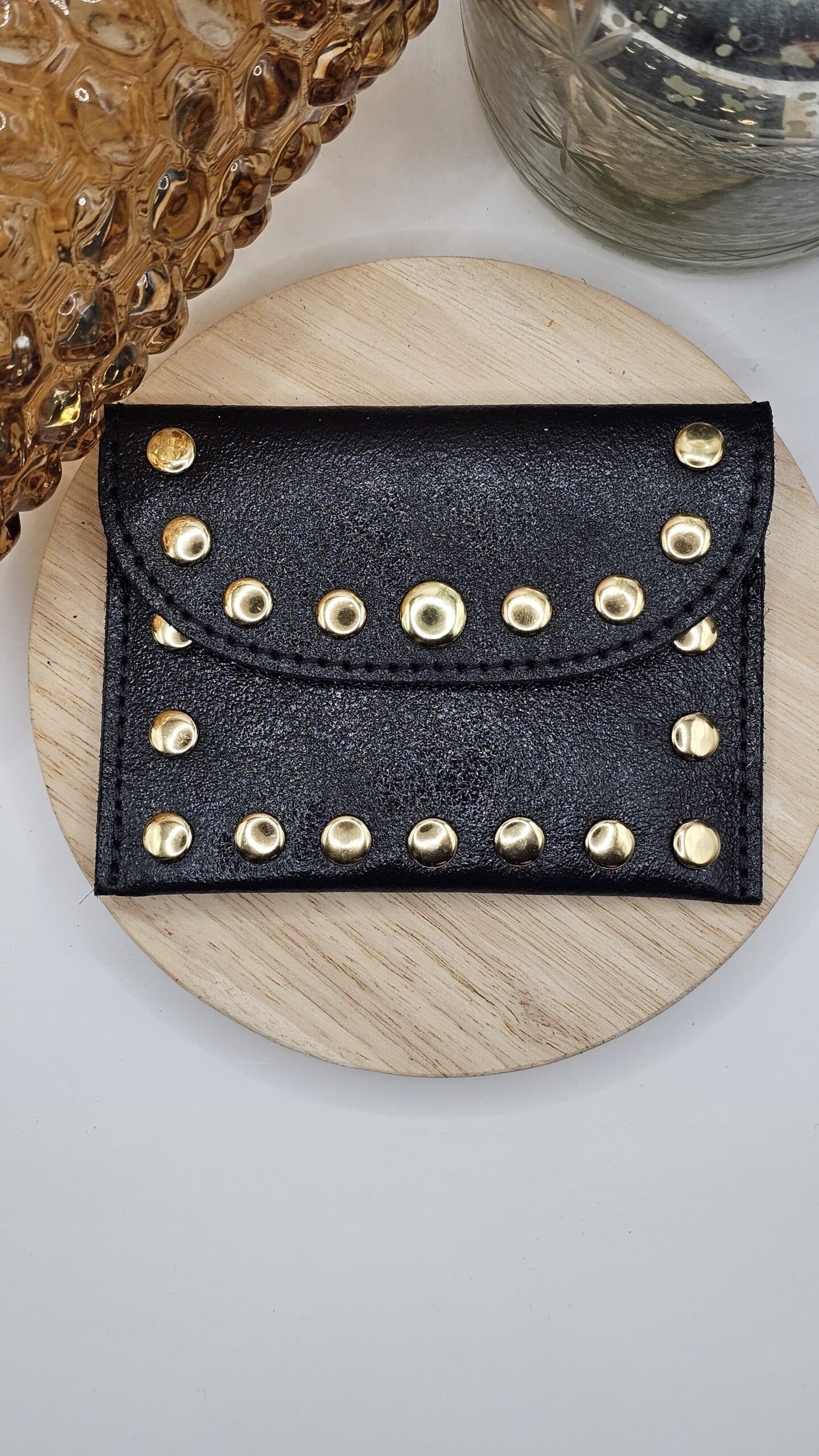 Pochette cloutée en cuir véritable de vachette fabriqué en Italie.