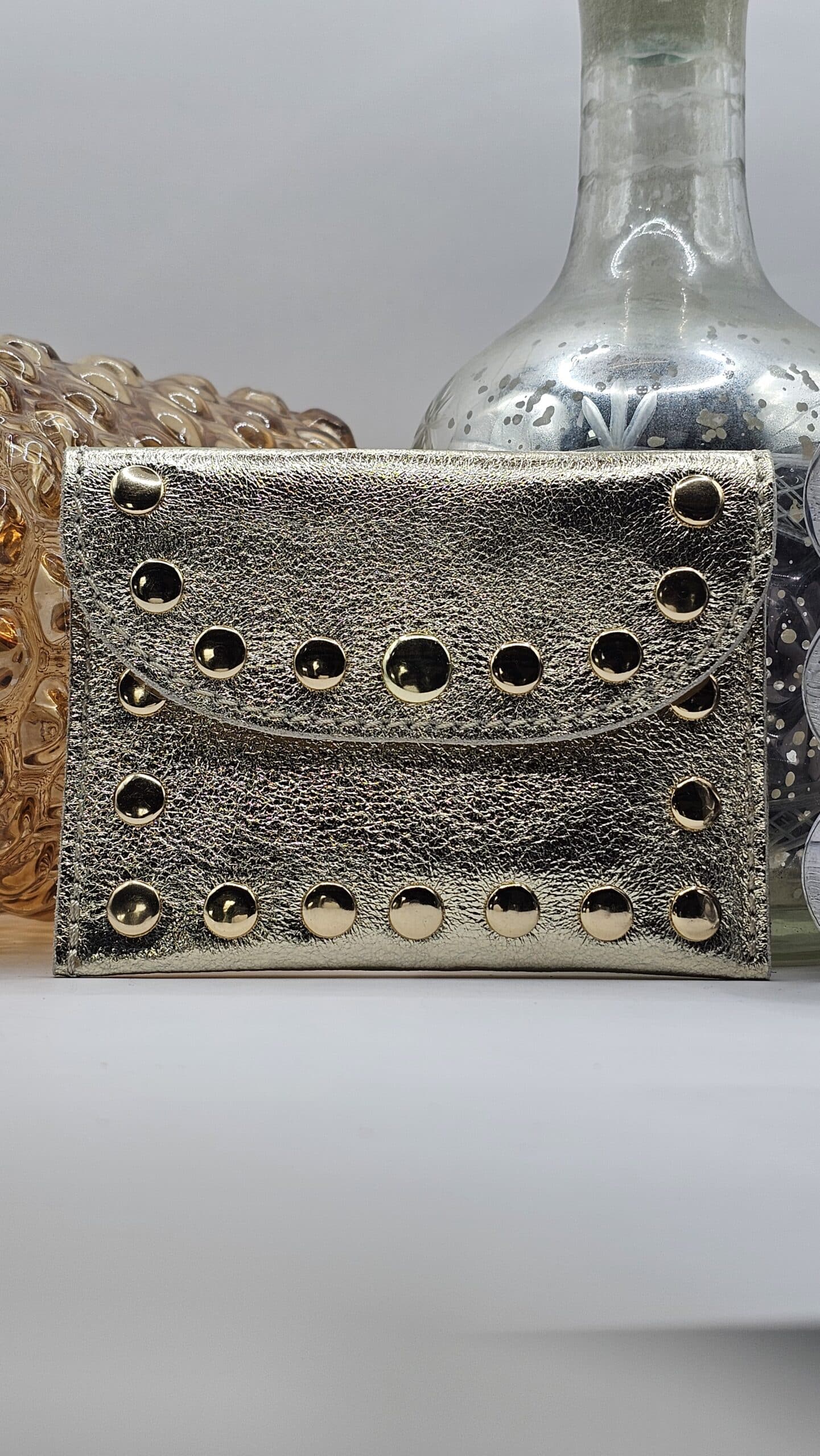 Pochette cloutée en cuir véritable de vachette fabriqué en Italie.