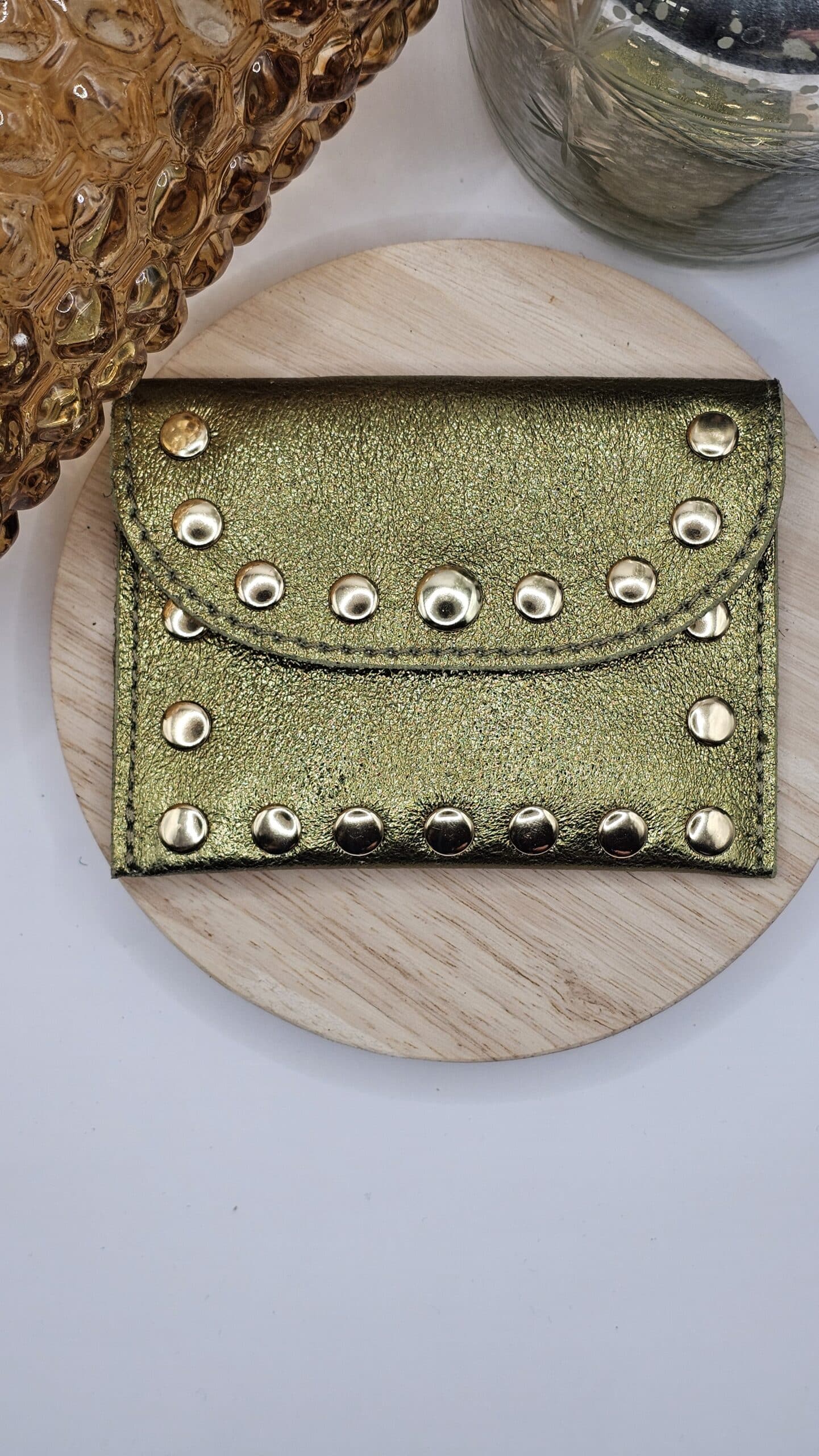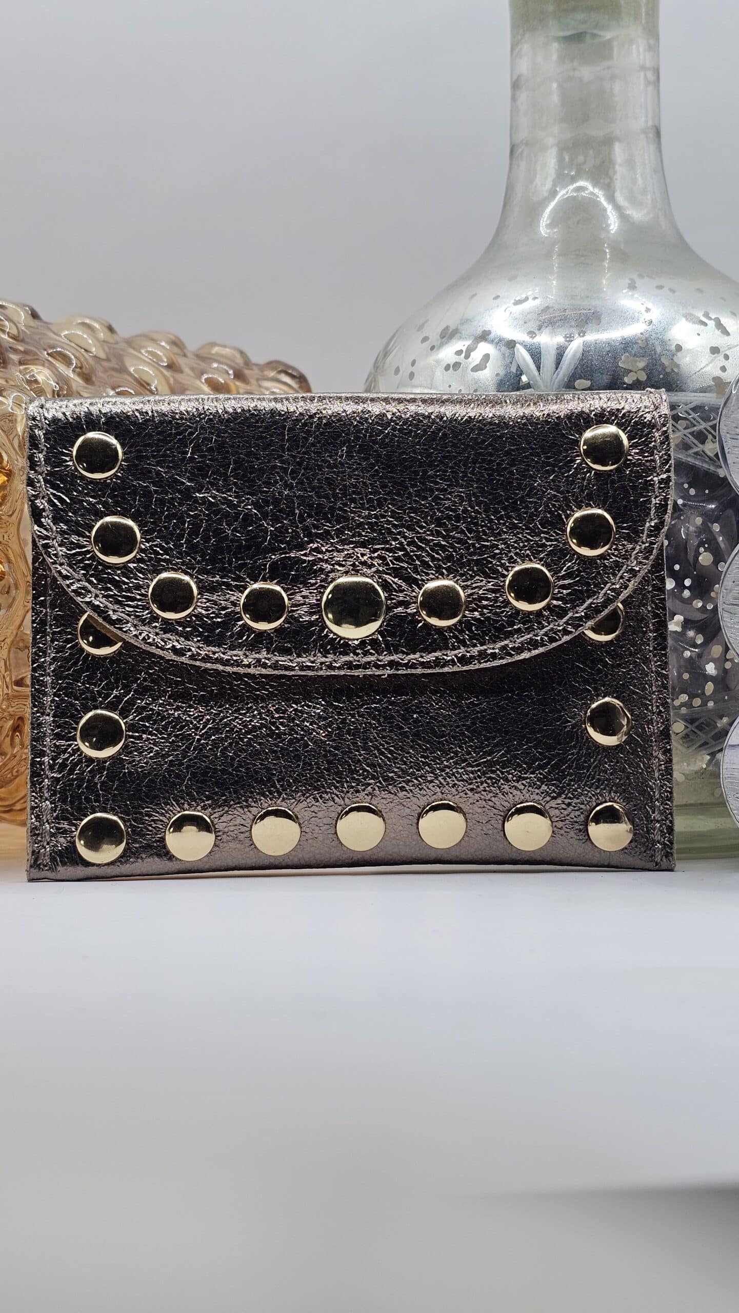 Pochette cloutée en cuir véritable de vachette fabriqué en Italie.