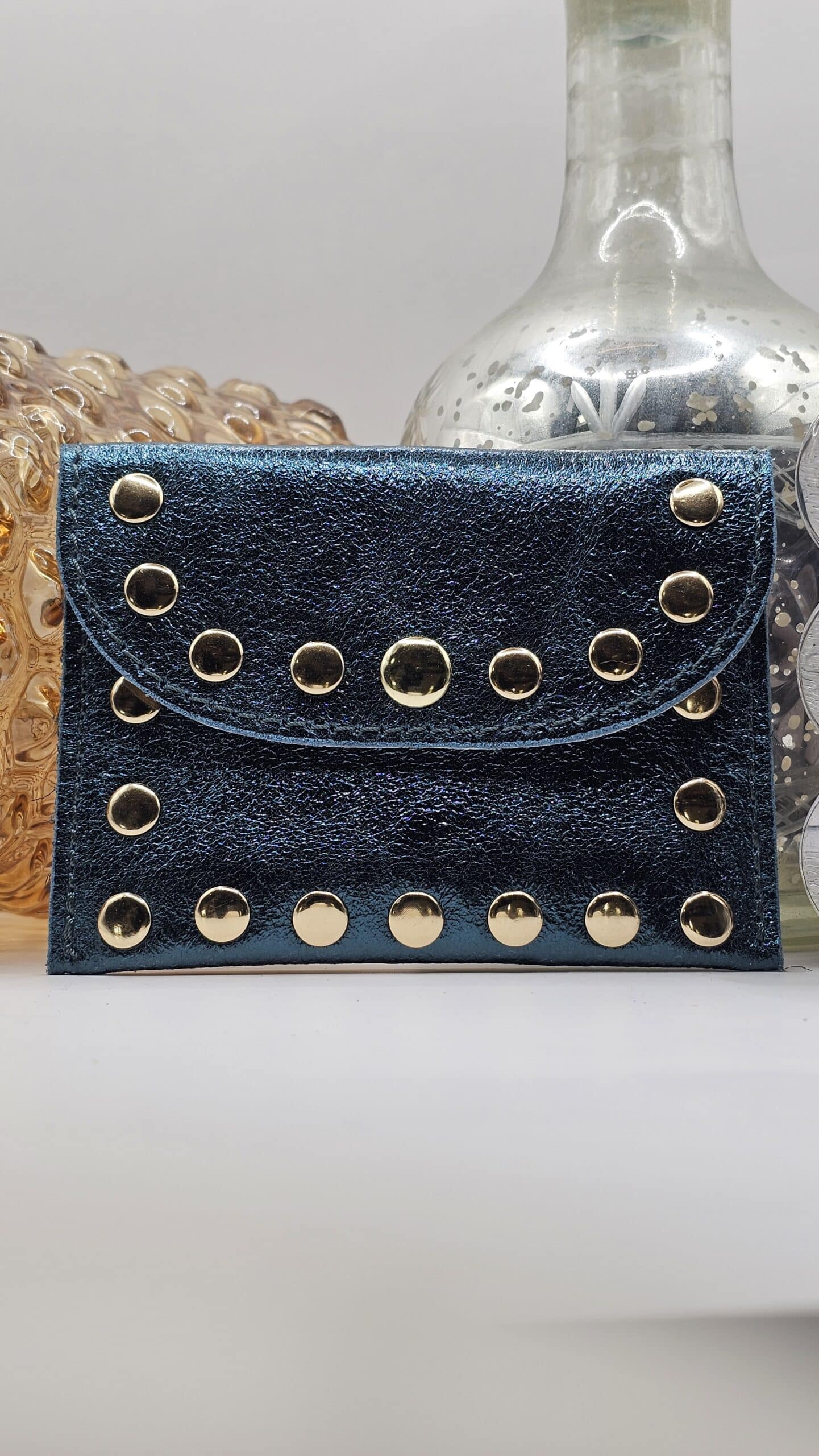 Pochette cloutée en cuir véritable de vachette fabriqué en Italie.