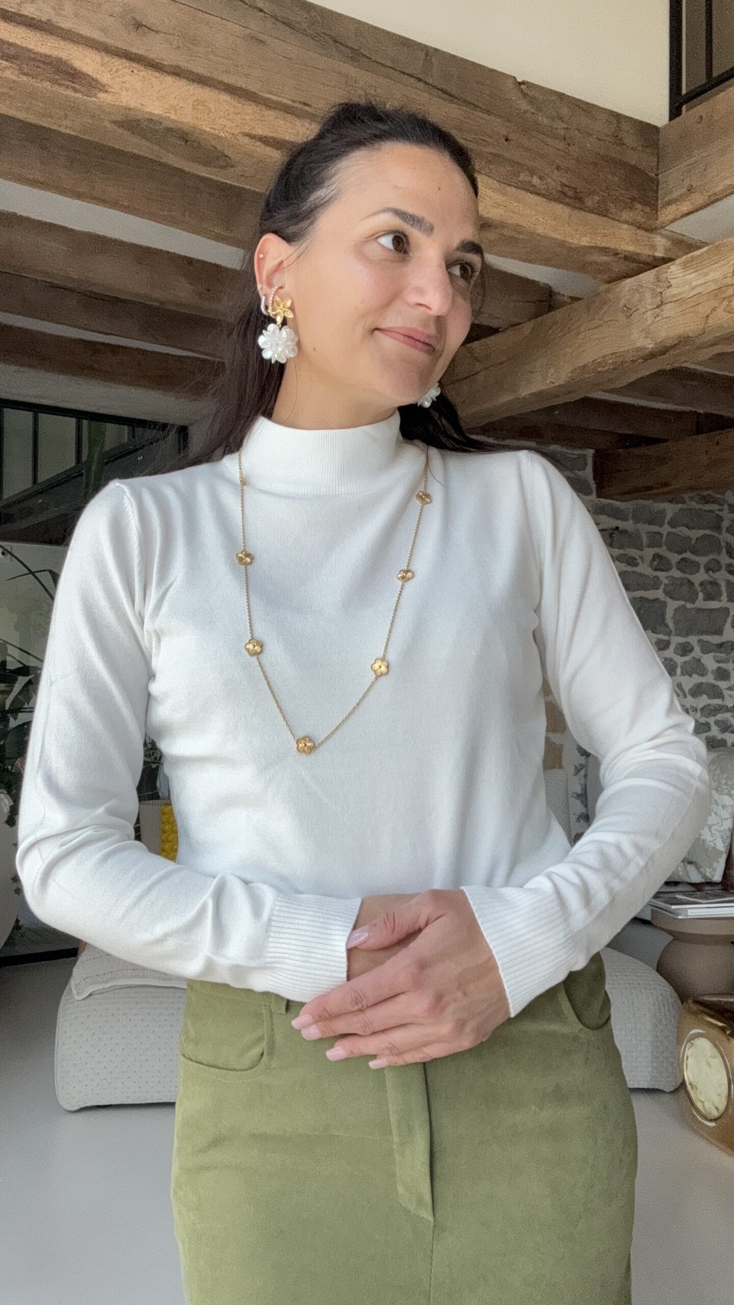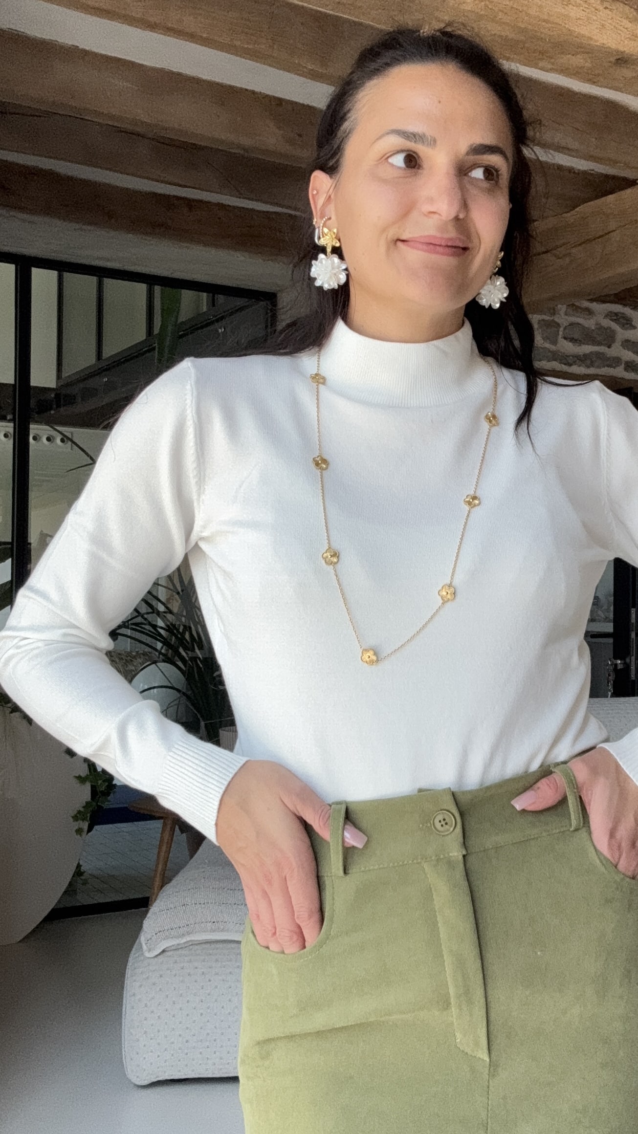 Pull blanc à col roulé