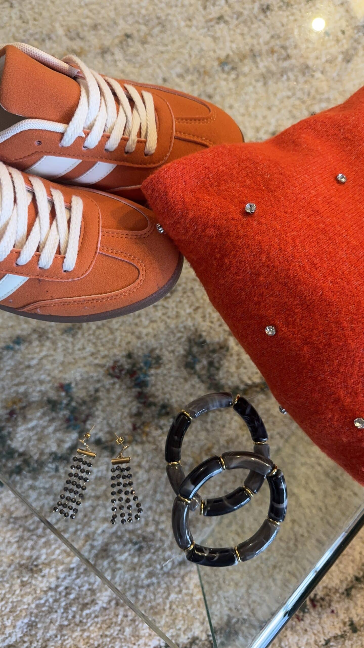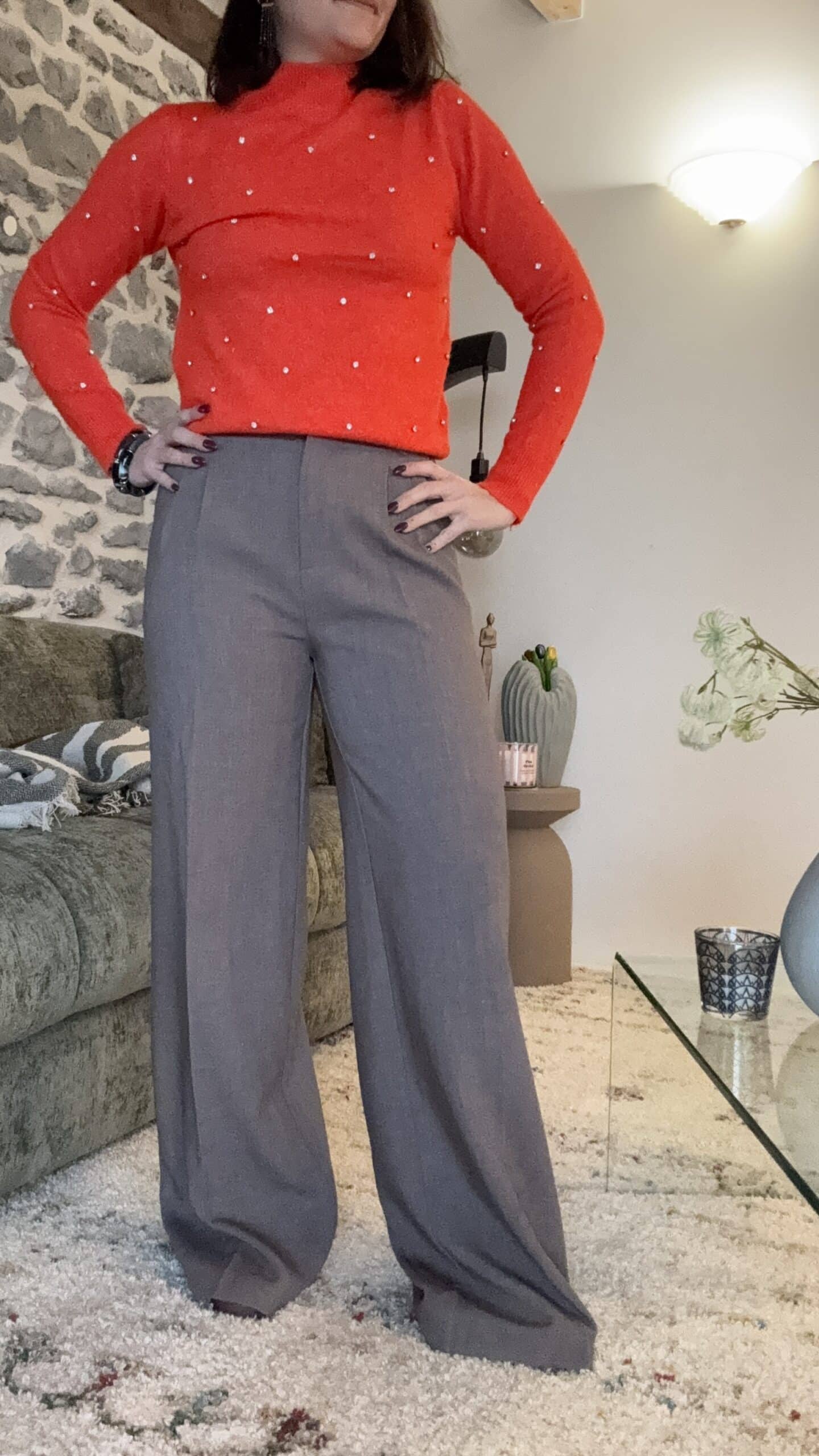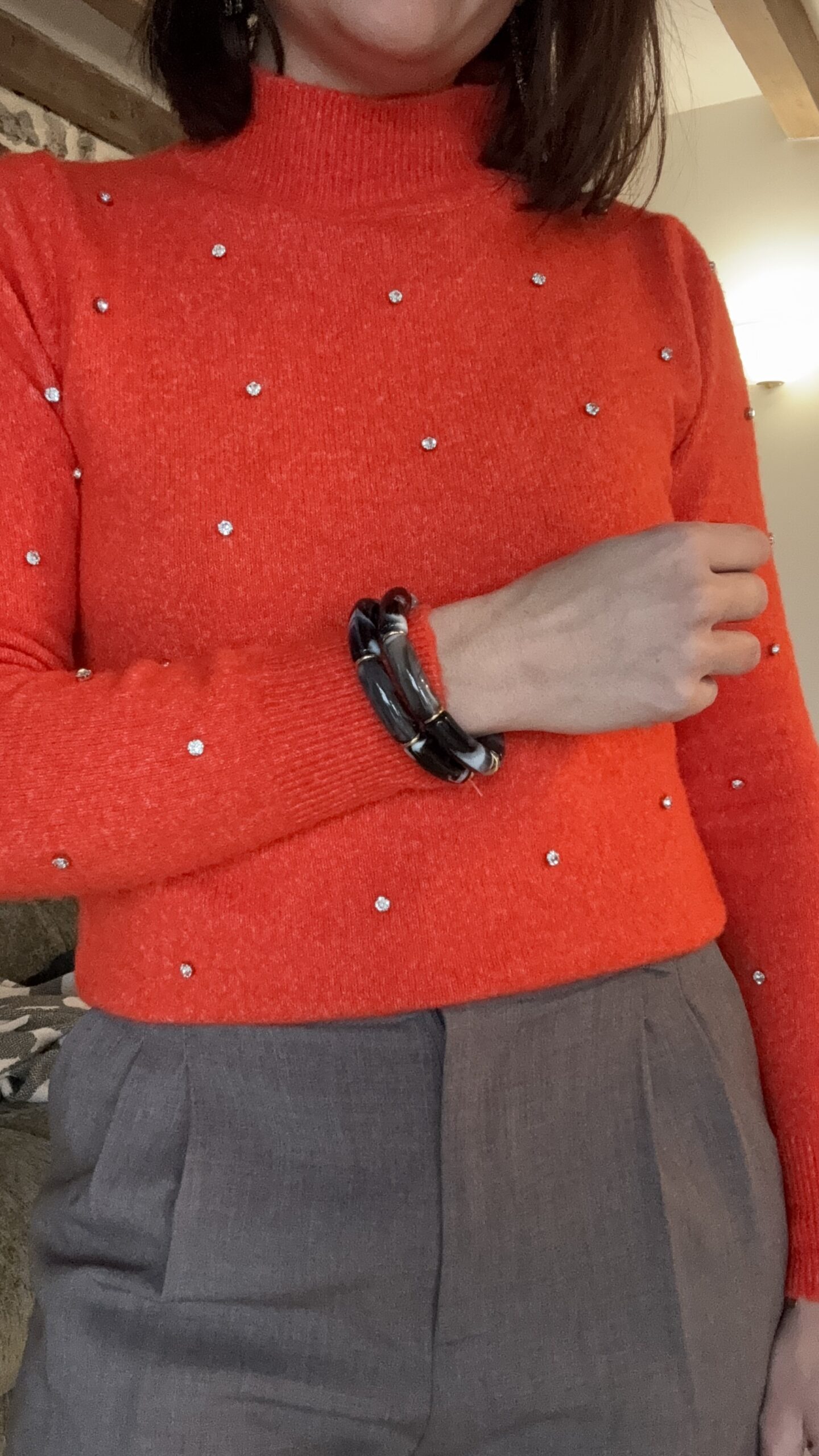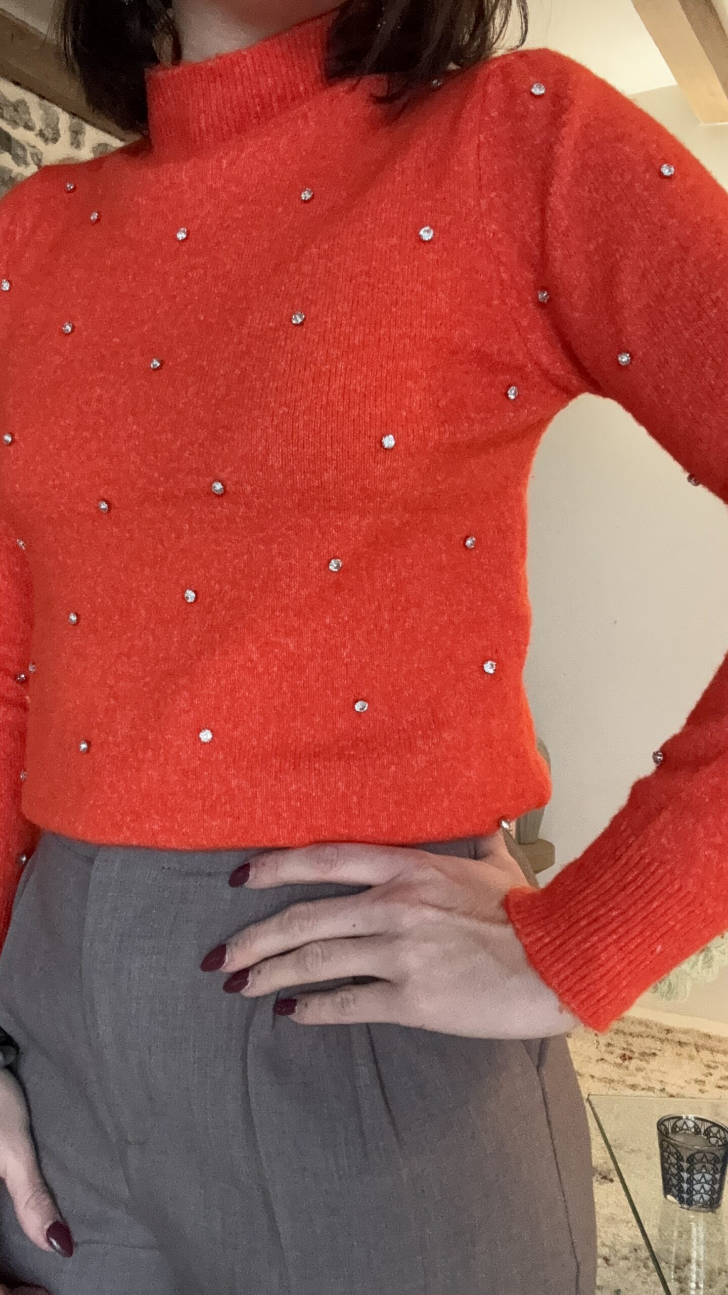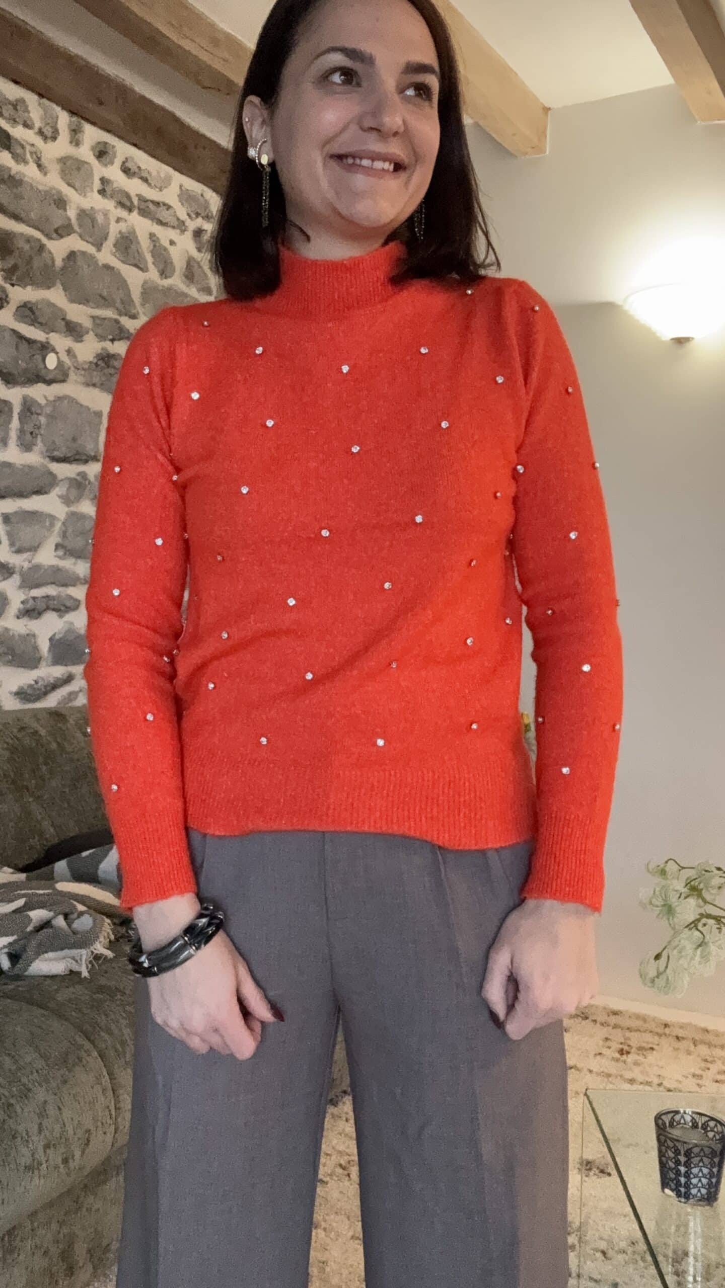 Pull orange à strass
