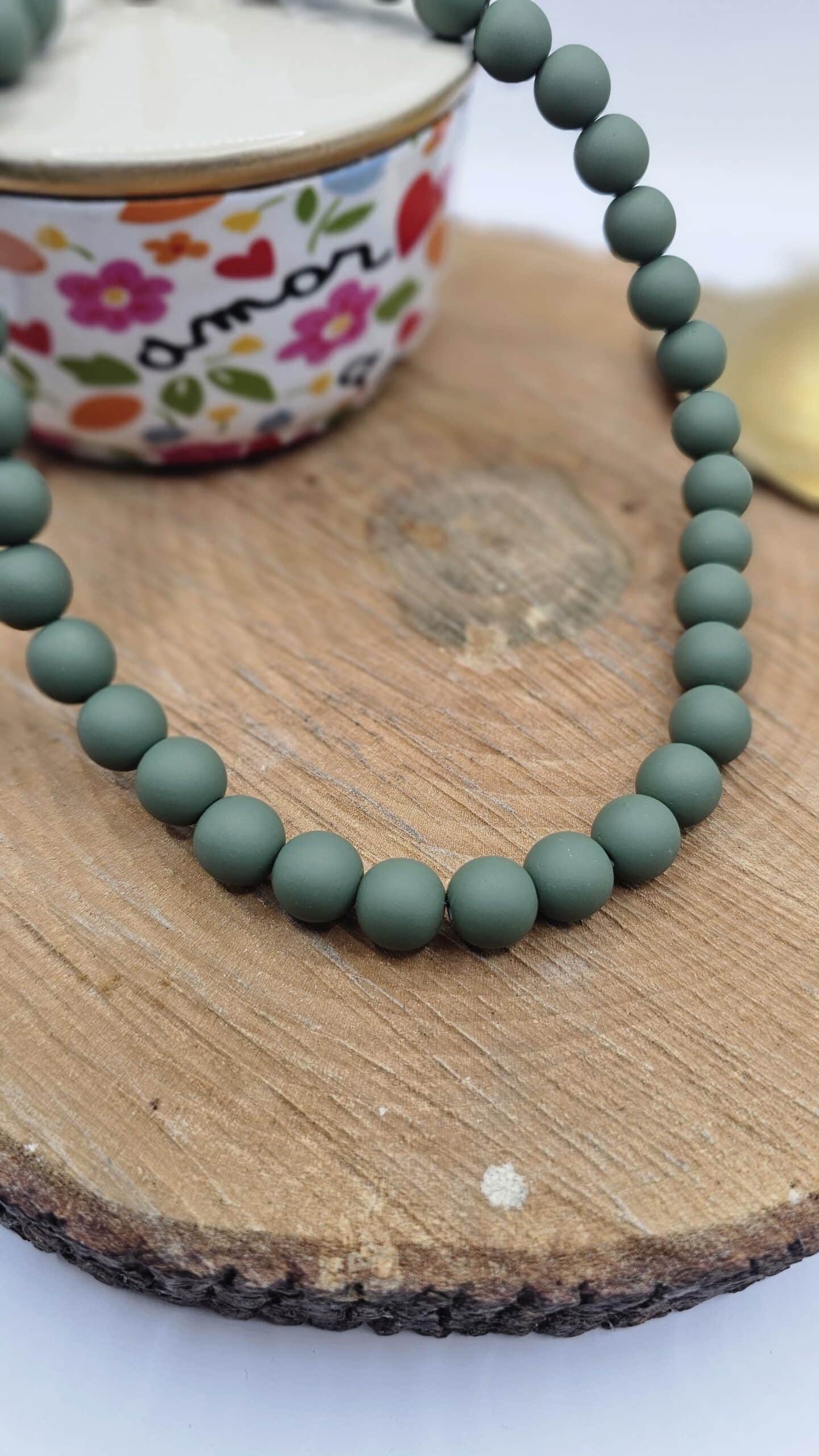 Collier perles vertes mates.
