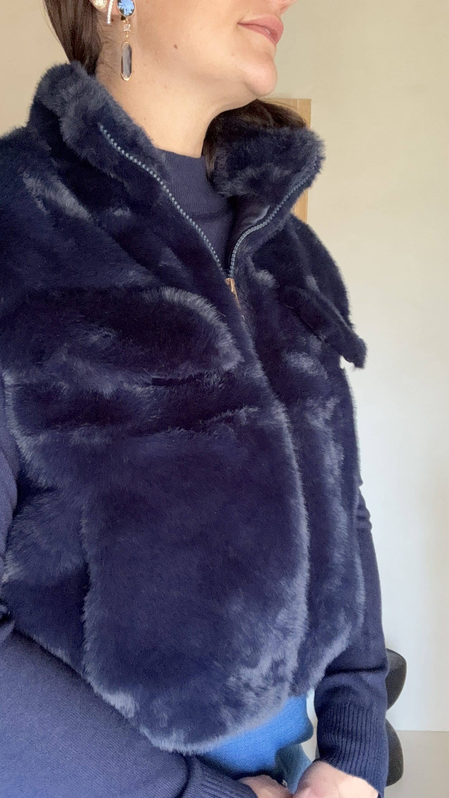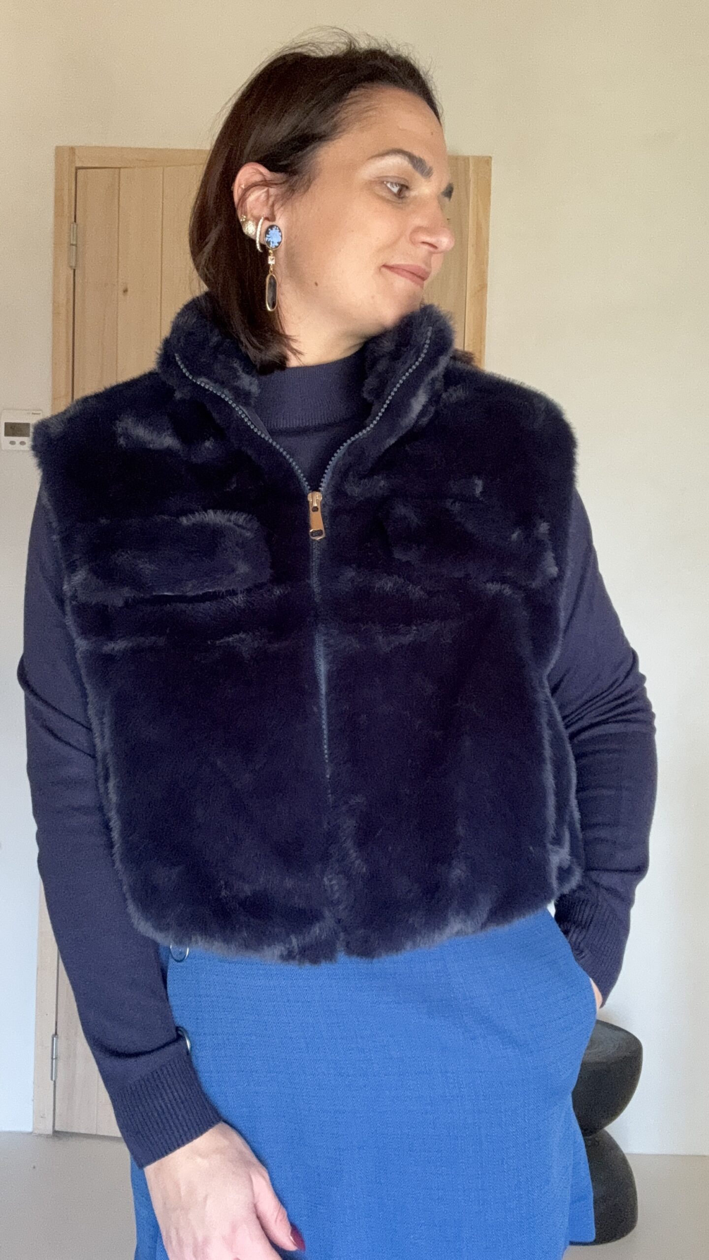Veste sans manche en doudou  avec poches à la poitrine et sur les cotés