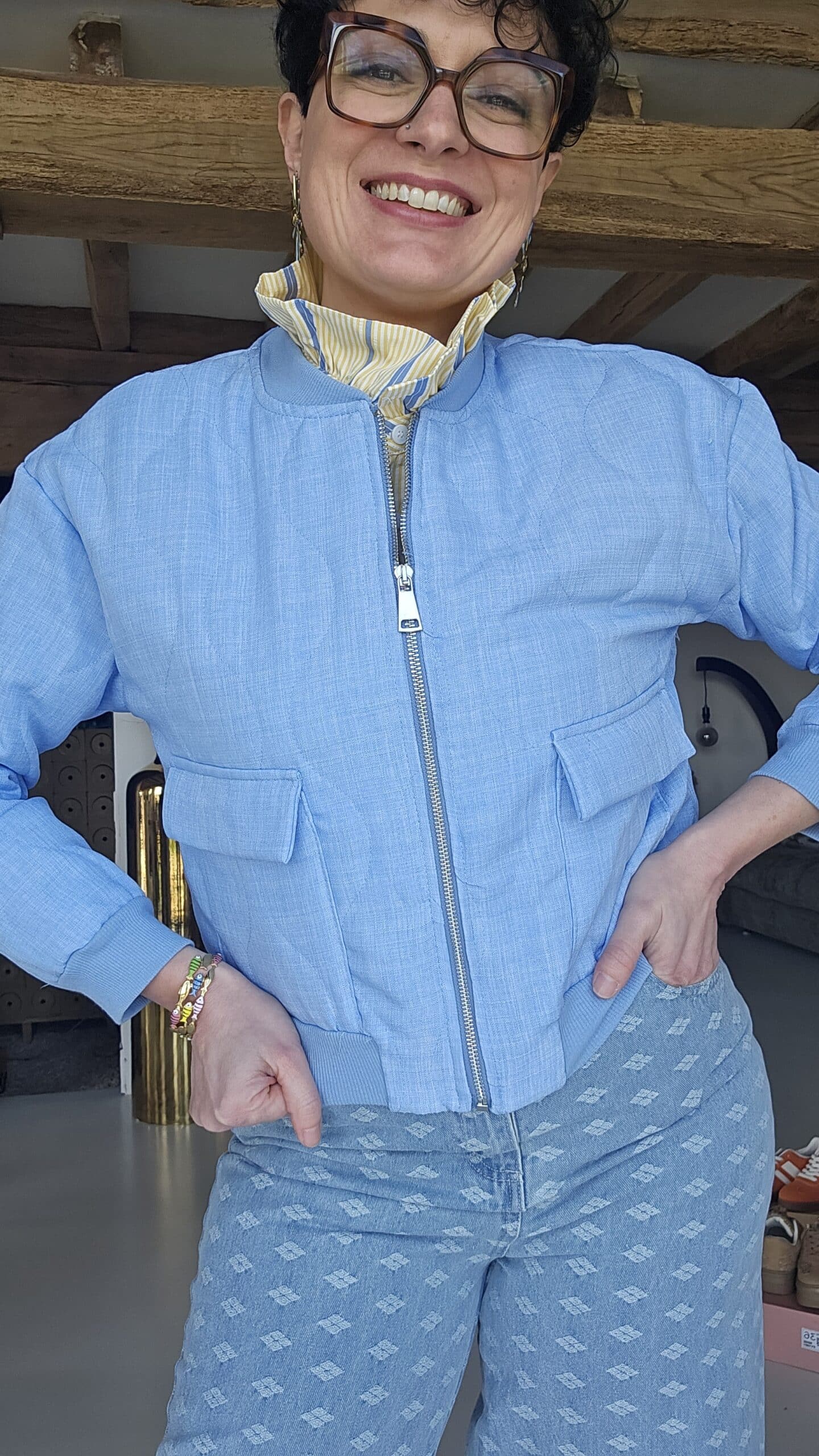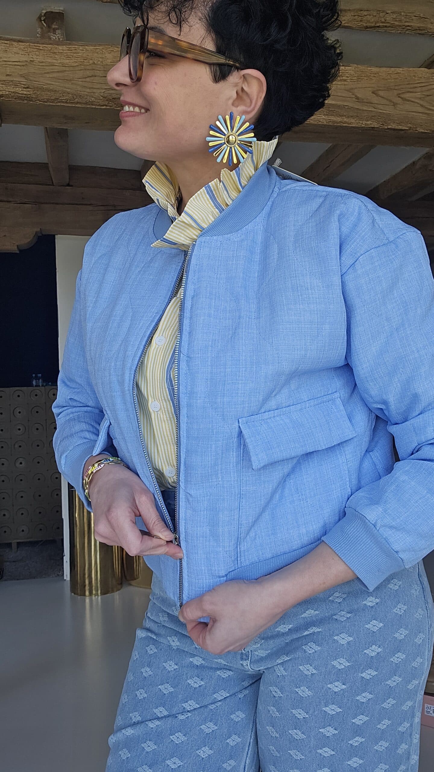 Veste bleu ciel avec poches, fermeture zip