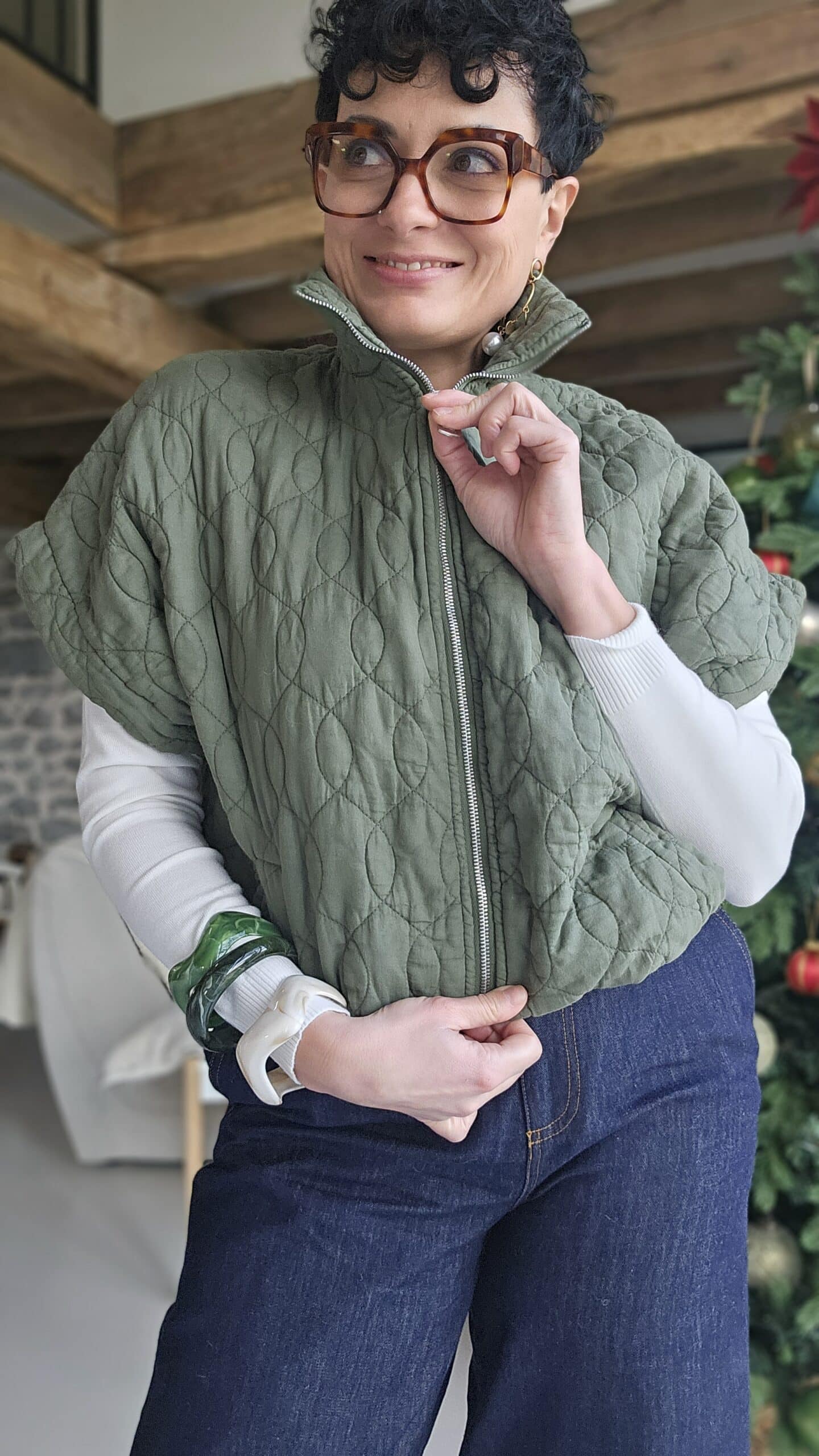 Veste sans manche matelassée kaki. Un bonheur à porter !